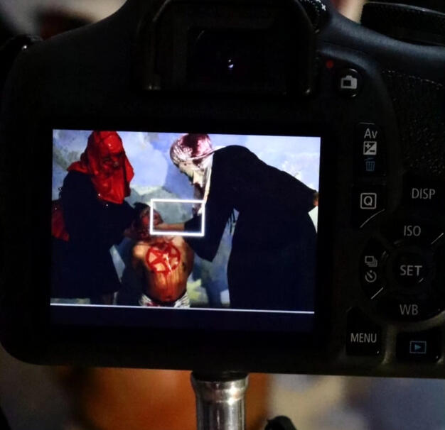 Detrás de la escena: el actor Manuel Medina (Felipe) después de un ensayo.